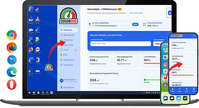 Az appba ingyenes felhasználóként a diktálási időszakon kívül egyszer van lehetősége mérőállást rögzíteni. PRO előfizetőként viszont nem csak egyszer diktálhat, hanem korlátlanul, akár naponta is, így bármikor végig tudja követni, hogyan alakul a gáz-és/vagy áramfogyasztása a két diktálási időszak között is. Nincs is annál jobb érzés, amikor tudja pl. 2 héttel a hivatalos diktálás előtt, hogy hogyan áll időarányosan a felhasználható kedvezményes árú gázzal, belefér-e a keretbe és milyen költségekre számíthat.